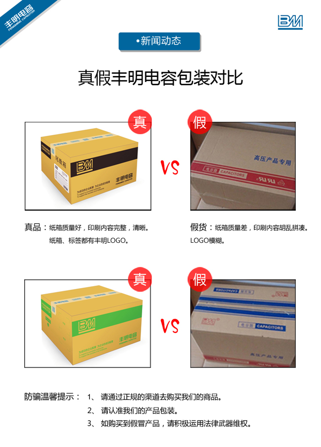 真假豐明電容包裝對比,支持真品,杜絕假貨!