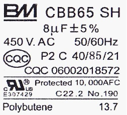 :UL認證標(biāo)志,下面的數(shù)字是BM電容UL認證的證書編號。